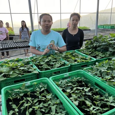 Theme 3. Community empowerment through training and introduction of new technology. The National Training Center was officially inaugurated in March 2024. Here education, training, , seminars and workshops are held for various groups interested in general or specific topics related to community empowerment. Large groups of senior University students spent several months learning the practical as well as the theoretical aspects of modern sustainable agriculture. Farmers are also trained through different government programs at the center. Agribusiness venture are also being explored with entrepreneurs including utilization of of sweet potatoes into values added products. .